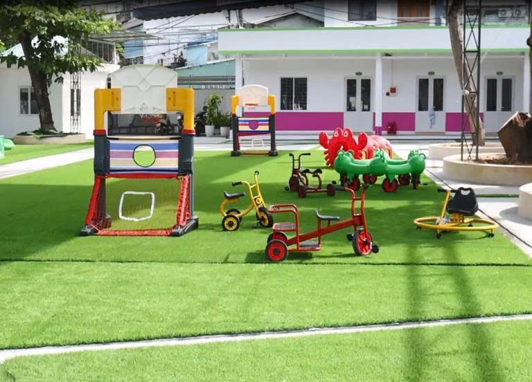 Các lớp học được trang bị hệ thống điều hoà không khí, Tivi màn hình lớn, có phòng học Robotics, phòng tiếng Anh, phòng học năng khiếu, sân chơi rộng rãi...