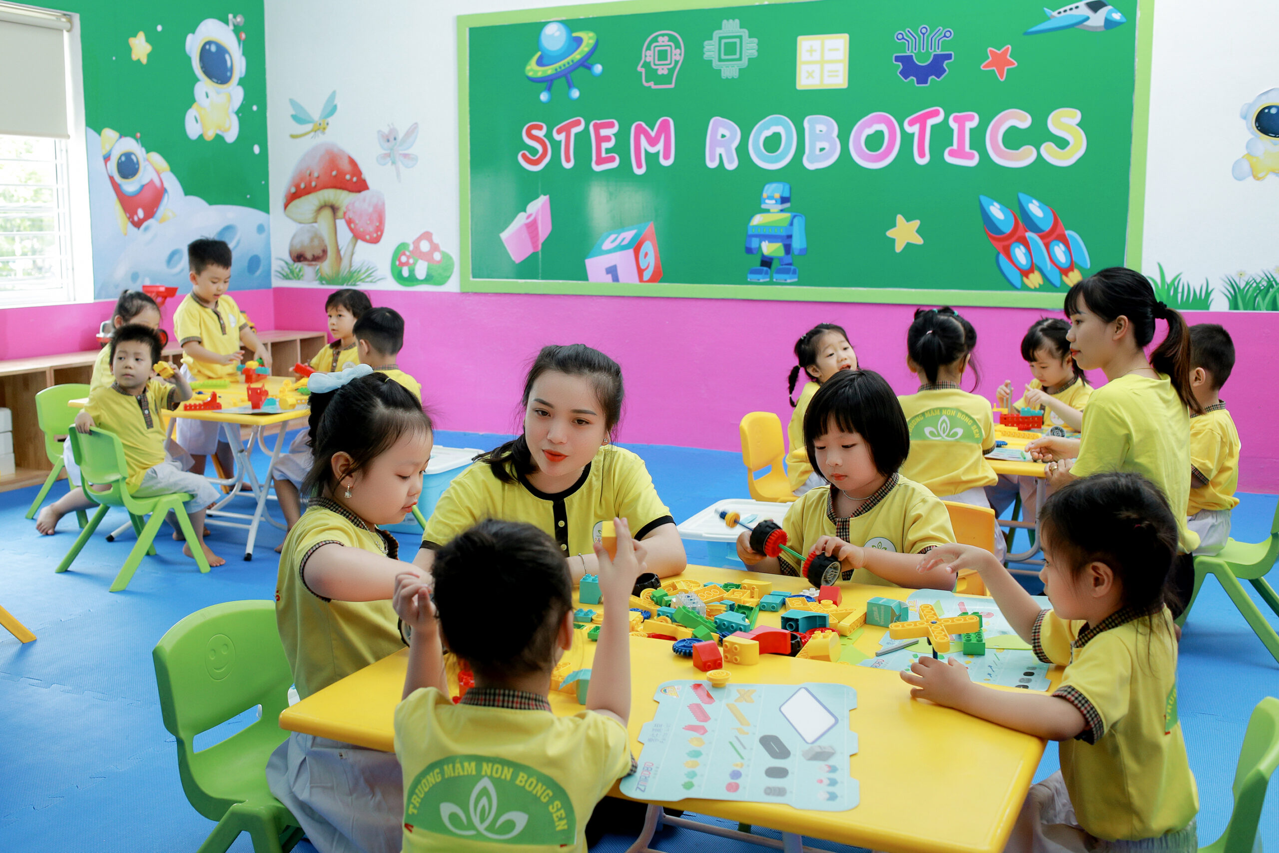 Ngoài Chương trình Giáo dục mầm non của Bộ GD&ĐT, tại trường MN Bông Sen trẻ còn học các chương trình tích hợp STEAM và kỹ năng bổ trợ sau: Làm quen tiếng Anh